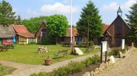 Landsbyen er bygget som små huse, og man finder skolestue, købmand, frisør, posthus, karlekammer, soveværelse, stuer fra klunketiden og meget, meget mere. Helt speciel er kirken, der i nyere tid har været anvendt i forbindelse med vielser.